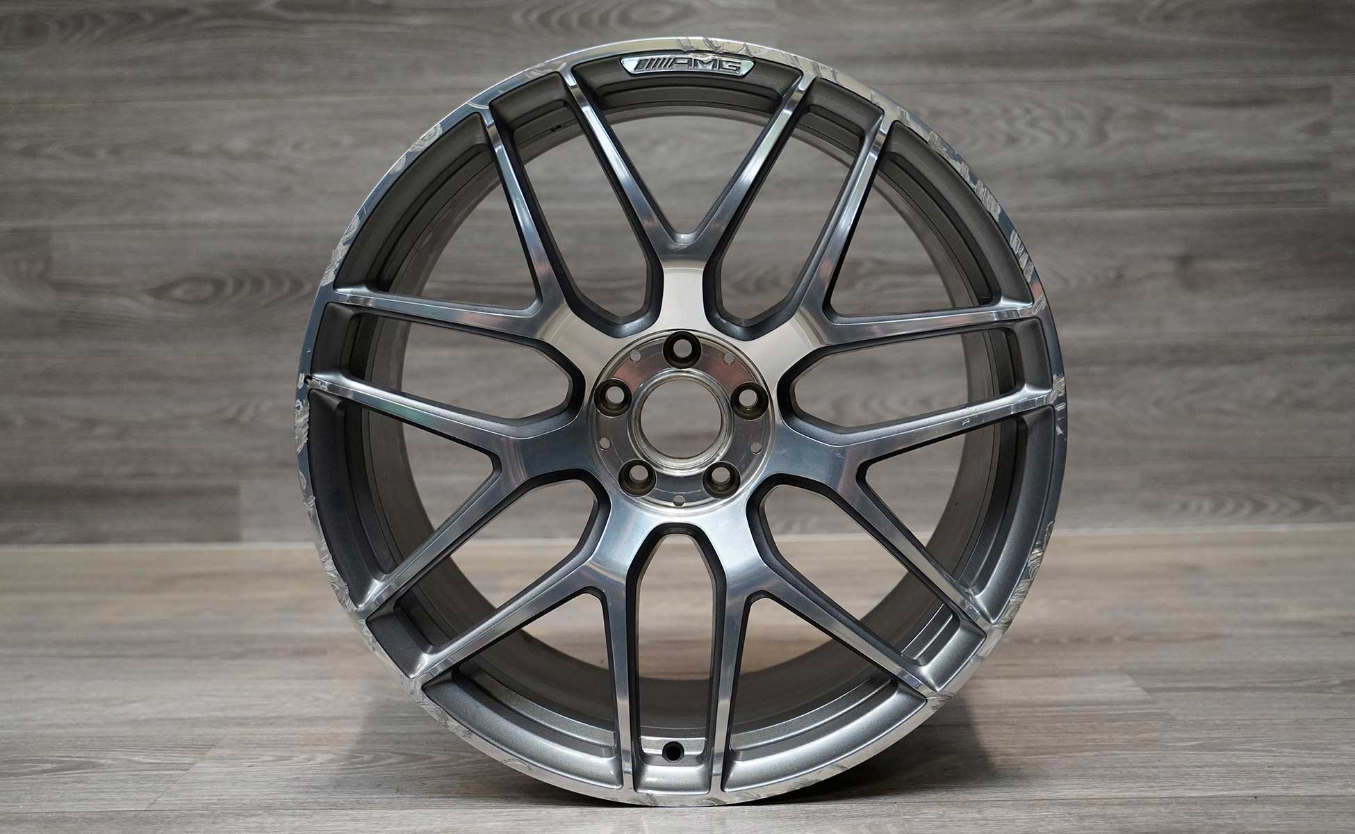 Viele Felgen sind von Werk aus bereits mit einem Alu-Look versehen. Weisen diese Felgen Beschädigungen, Kratzer oder Bordsteinschäden auf, kann hier nicht lackiert oder gepulvert werden. Die Felge muss CNC-Glanzgedreht werden. Dabei achten wir auf die Felgenkontur und vermessen die Felge für einen sauberen Rundlauf. Abschließend versiegeln wir die Felge mit einer transparenten oder matten Klarlack.